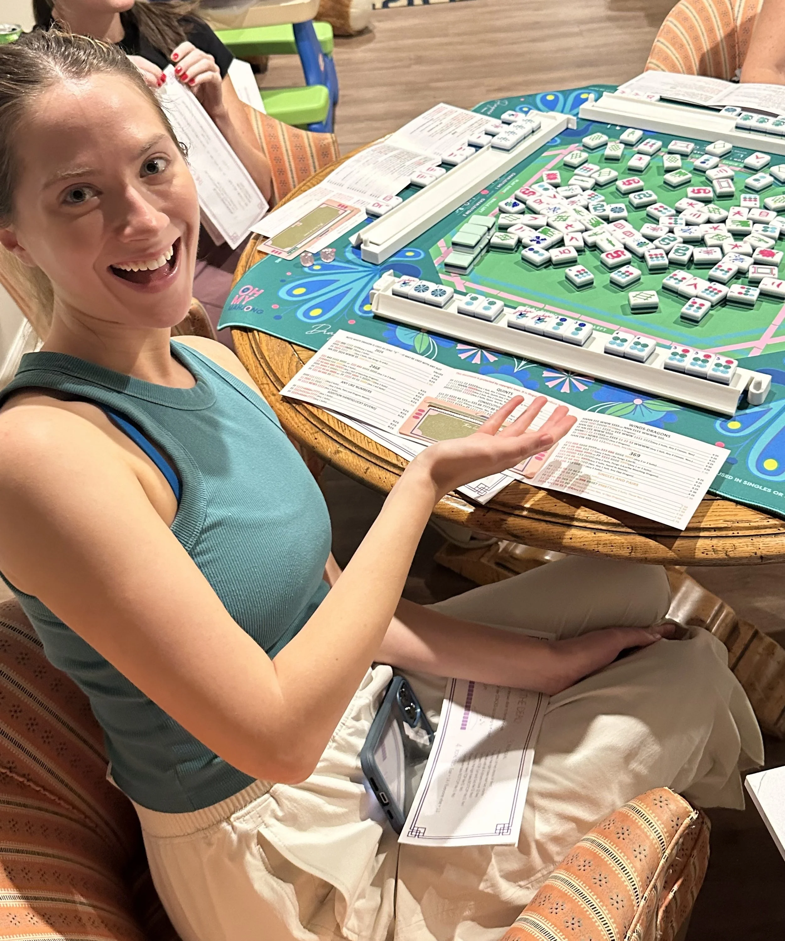 Katie started playing Mahjong about five years ago. She was immediately hooked! After playing with a group of friends for a few years, she wanted to "spread the love" of the game with others and be part of a community.